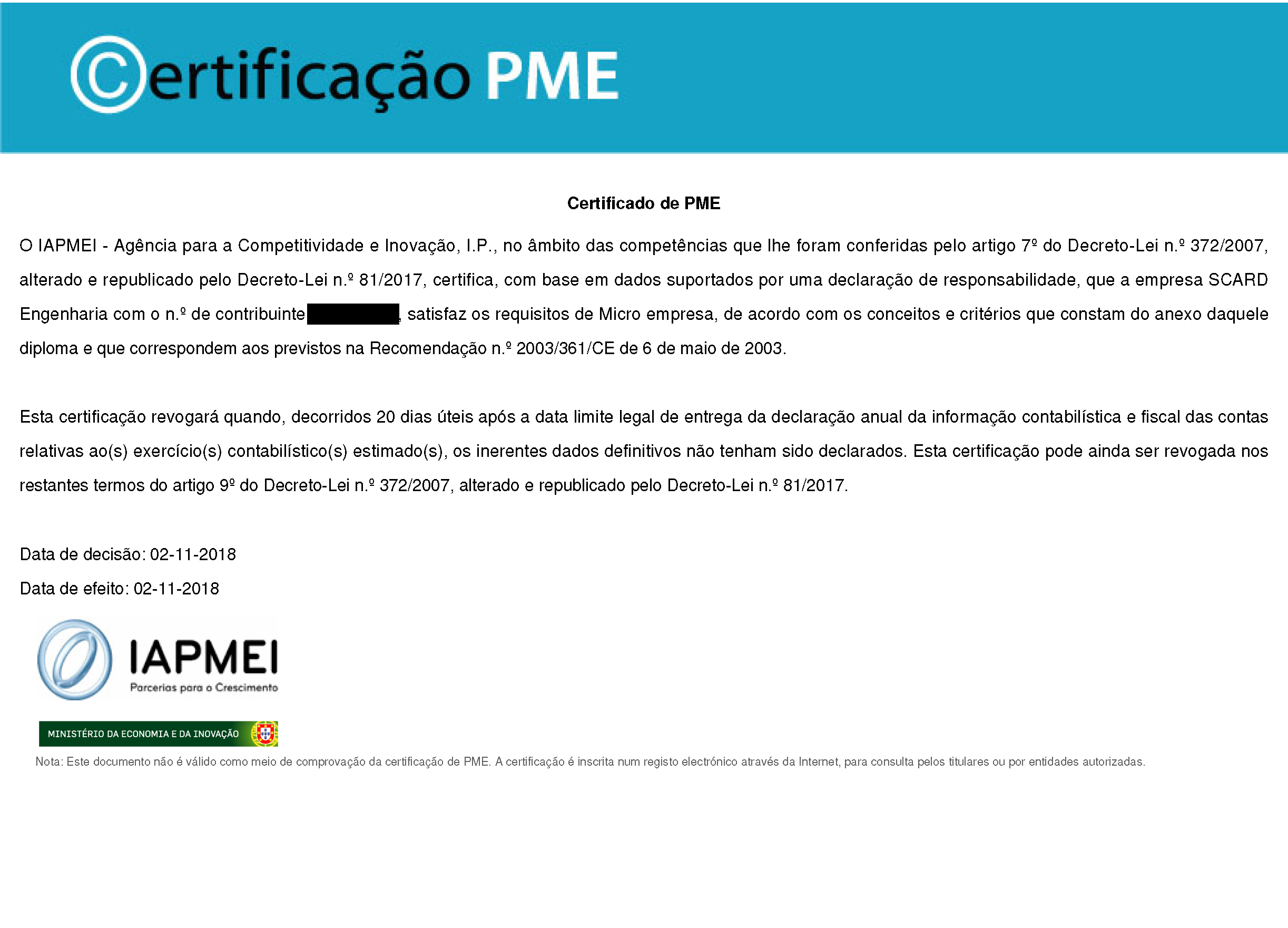 Excelentes notícias para começar o mês de Novembro, a nossa empresa é agora oficialmente uma micro empresa certificada pelo IAPMEI.